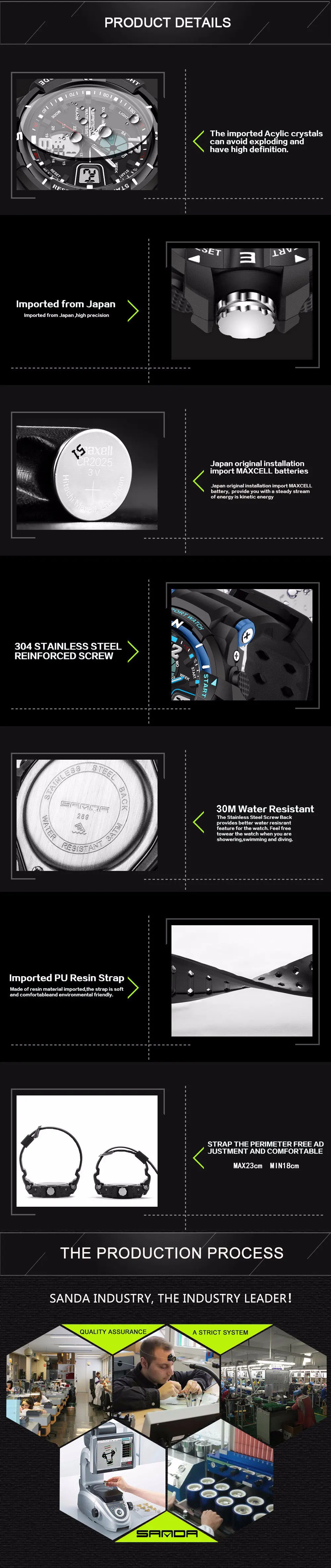Feature:Water Resistant,LED display,Multiple Time Zone,Stop Watch,Back Light,Complete Calendar,Shock Resistant,Diver,Chronograph,Auto Date,Alarm,Swim
