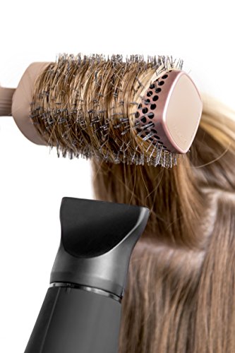 -. Feature : Rippled nylon bristles increase contact with hair for faster drying / High-heat resistance / Soft-touch grip for handle comfort