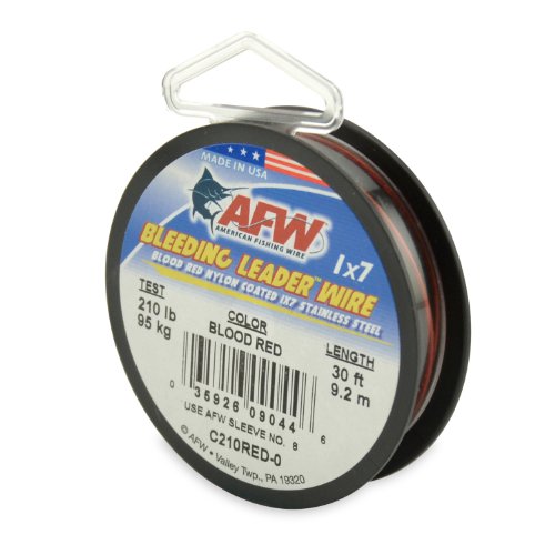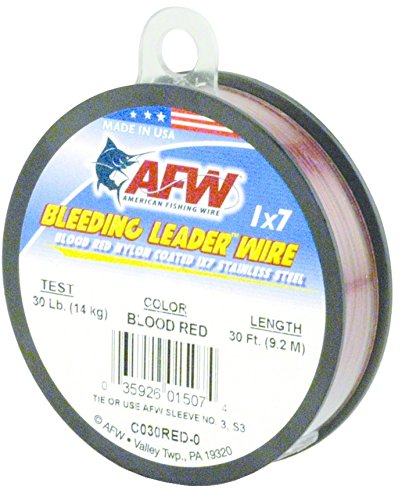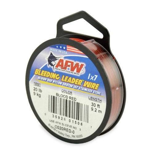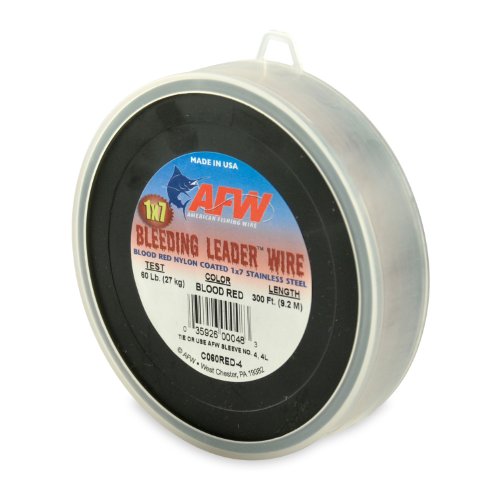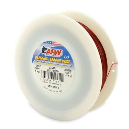 ReleaseDate : 2011-03-22 Studio : American Fishing Wire Publisher : American Fishing Wire Binding : Sports Product Description Bleeding Leader Wire is the World’s First Blood Red nylon coated leader wire. The unique red nylon coating mimics actual blood in top water fishing conditions to attract fish. In deeper water, the color Red is filtered out faster than other colors on the spectrum and ‘vanishes’ to fish. Bleeding Leader Wire is ideal for all types of toothy fish and is made from our strong Surflon 1X7 stainless steel leader wire. 0