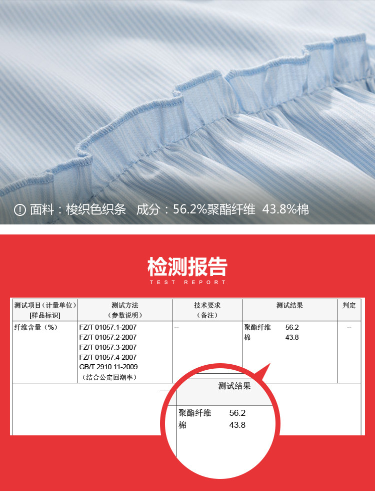 | 面 料:56.2%聚酯纤维 43.8%棉颜 色:蓝白条纹 |