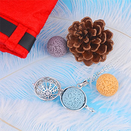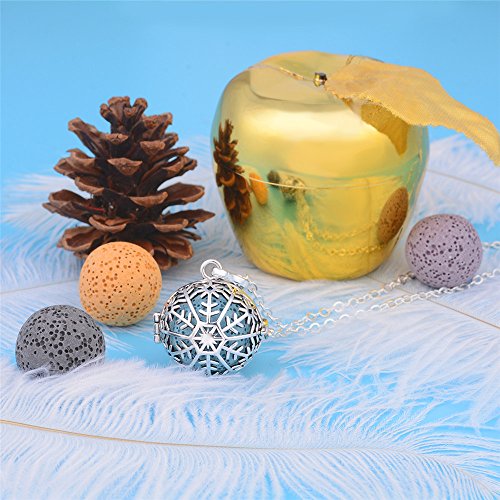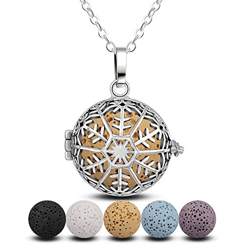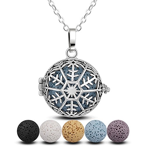 INFUSEU Lava Stone Rock Aromatherapy Diffuser Necklace Snowflake Locket Pendant with 30" Long Chain for Essential Oil Scent women Jewelry + 5PCS Natural Washable Lava Beads