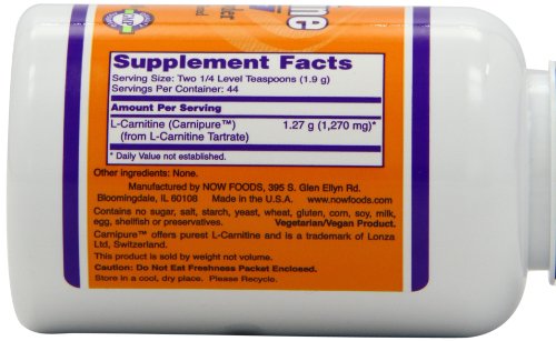 -. Binding : Health and Beauty -. Brand : NOW -. Label : NOW -. Manufacturer : NOW -. PackageQuantity : 1 -. ProductGroup : Health and Beauty -. ProductTypeName : HEALTH_PERSONAL_CARE -. Publisher : NOW -. Studio : NOW -. Title : L-Carnitine 100% Pure Powder