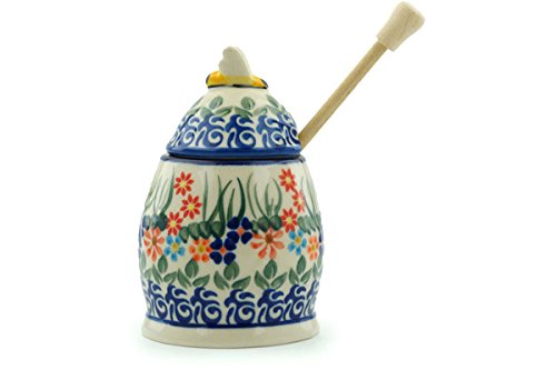 Studio : Boleslawiec Publisher : Boleslawiec Binding : Kitchen Product Description Polish Pottery Honey Jar with Dipper 5-inch Blissful Daisy Dimensions: 3½" wide, 3½" long, 5¼" high Capacity: 9oz Polmedia Polish Pottery Stoneware is: * Hand crafted and hand painted in Boleslawiec, Poland * Microwave safe, dishwasher safe, oven safe up to 480 F, freezer safe * Lead and cadmium free * Crack and chip resistant * Intended for everyday use, easy to clean * Highly collectable About Polish Pottery Polish pottery is known for its versatility in the kitchen and on the table. It is safe for use with food in the microwave, freezer, oven and dishwasher. Polish stoneware is resilient to abrasives making it durable and resistant to scratching or chipping. It distributes heat evenly for perfect baking and is also nonstick for easy clean-up, making it easy to care for. The bright patterns never fade, and are offered in thousands of variations to mix and match. It is this combination of function and beauty that makes Polish pottery so appealing. The pottery is fired in electric and gas kilns at temperatures exceeding 2200 degrees Fahrenheit. This results in a stoneware that is meant to resist aging and provide lasting beauty that stands the test of time. Polish stoneware is lead and cadmium free. Polish Pottery is hand crafted and hand painted in the Boleslawiec region of Poland. This region is famous for its naturally found white clay which artisans have used for centuries to craft this durable and beautiful stoneware. Each piece of pottery is carefully formed and painted by hand to ensure that exceptional attention to detail is paid to each piece. The most beautiful and intricate patterns are called UNIKAT patterns. These patterns bear the artist's signature. 0