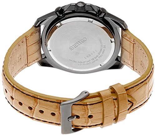 -. Title : Seiko Chronograph Black Dial Black PVD Tan Leather Mens Watch SNDD69