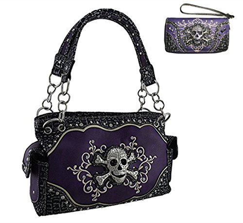 -. Title : Rhinestone Skull Metal Color Leather Women's Handbag, Wallet with Texas West Coin Collection in 4 Colors