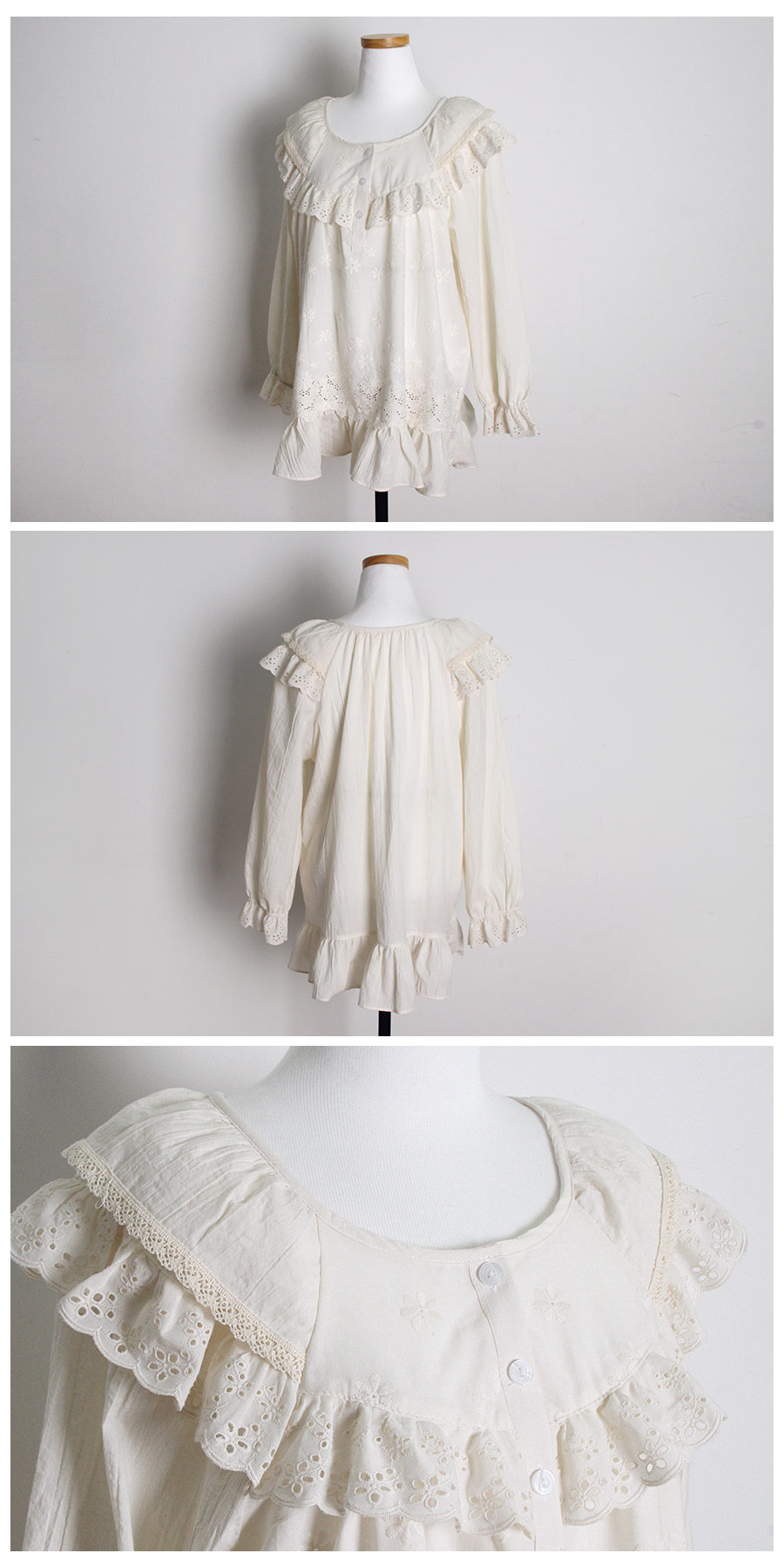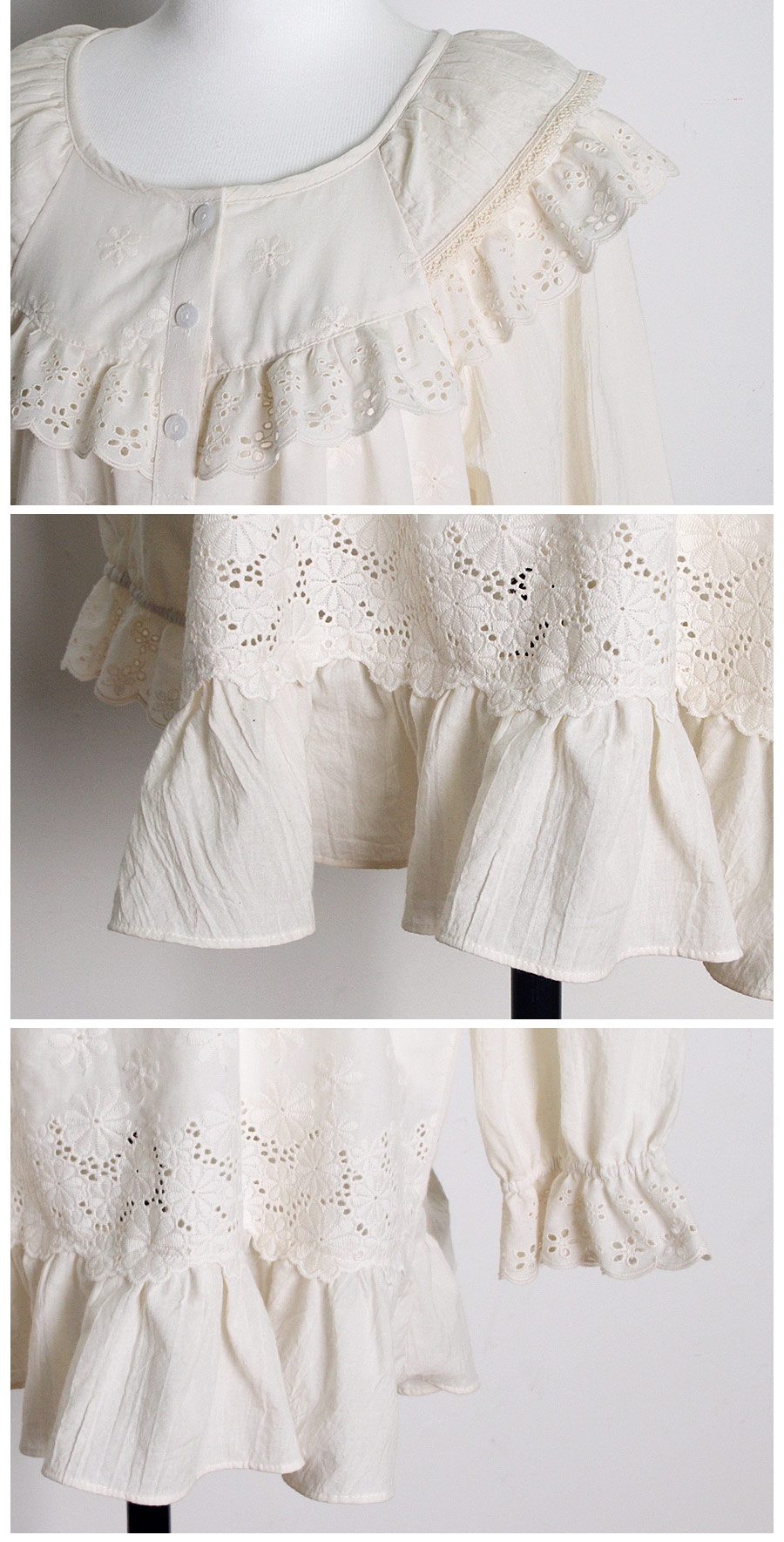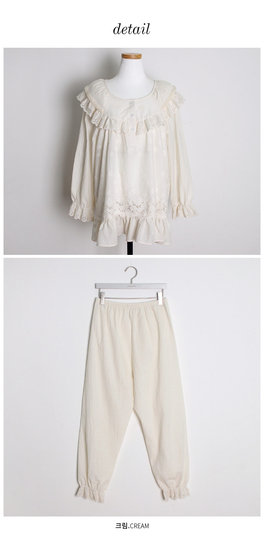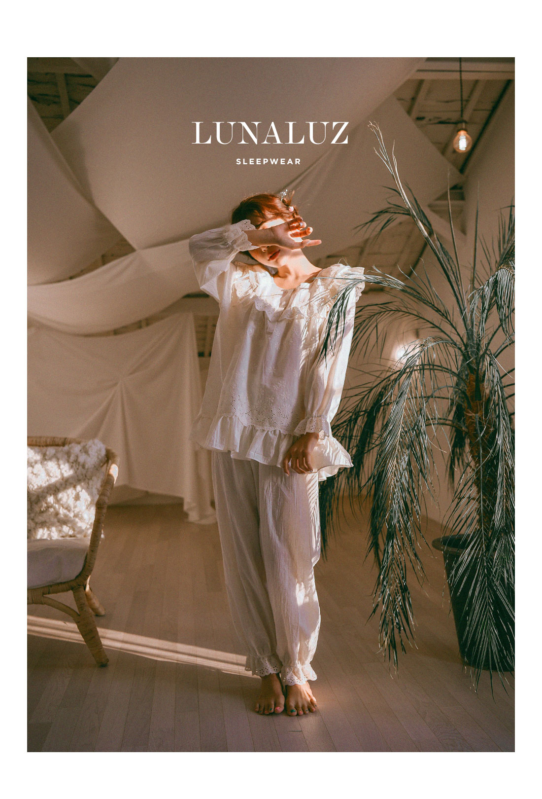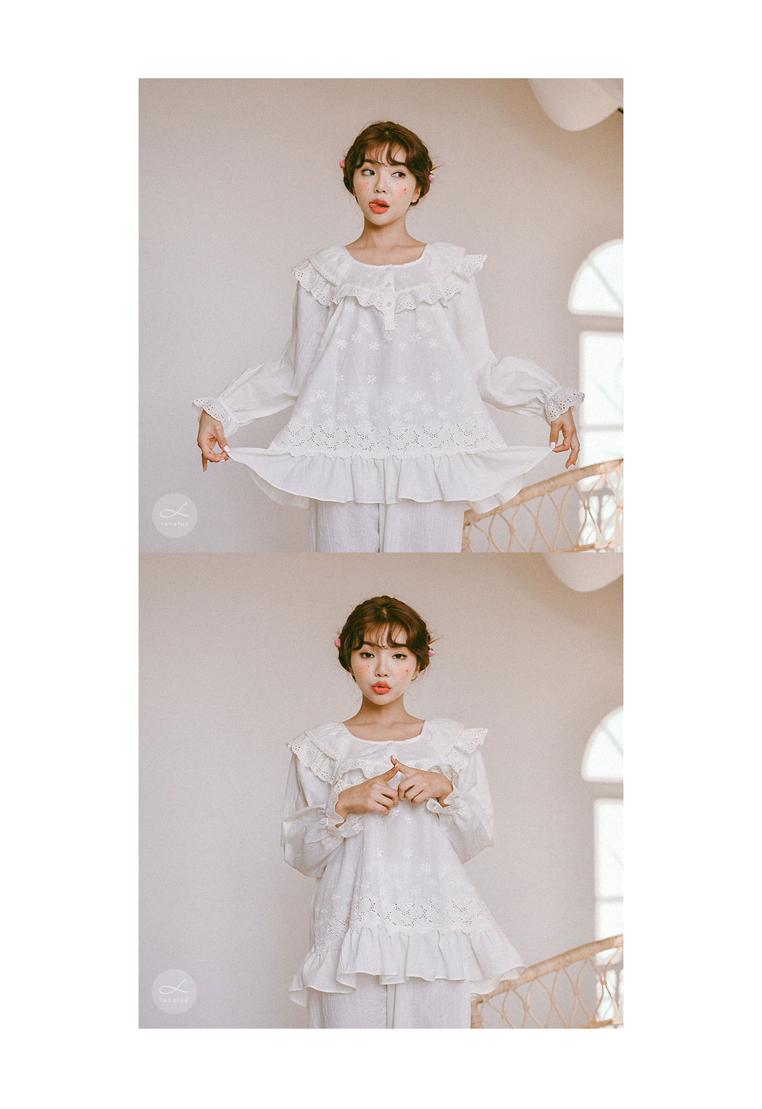 전체 플라워 자수를 짠 탄탄한 올오버 원단과 불규칙한 구김선이 매력적인 크리즈 소재의 믹스로 훨씬 감각적이고 로맨틱한 무드를 느끼실 수 있습니다. 크리즈 원단에 맞춰 올오버 자연적이고 네츄럴한 연베이지 컬러감의 잠옷으로 전 연령 두루두루 잘 어울릴 스타일이랍니다. 탄탄하고 고급스러운 소재감에서 우아한 분위기를 연출해보세요~! 크리즈가 잡혀져 있는 원단인 많큼 많은 요척을 사용한 잠옷으로 소재에서부터 충분한 매력을 느끼실 거에요! DETAIL 편안한 라운드 스타일로 래글런 패턴을 응용해 떨어지는 실루엣이 여유있고, 편안하며 여리한 느낌을 줍니다. 여리한 핏감이 체형커버에 탁월하며 슬림해 보이는 효과를 줍니다. 어깨선 없이 디자인된 잠옷으로 암홀의 절개선 없이 몸판과 소매가 이어지도록 디자인되었어요. 어깨선이 없이 매끄럽게 떨어지며 어깨 끝라인에는 잔잔한 토숀레이스와 면레이스를 동일한 연베이지컬러로 염색시켜 봉제했습니다. 바스트 라인과 소매 부분으로 이어지는 레이스 장식이 우아한 무드를 더해줍니다. 클로징을 길게 내려 탈착용이 쉽도록 제작했습니다. 드레스의 하단 부분에는 펀칭 올오버 원단이 한 층 더 매력을 더해줍니다. 뒤에서 보았을 때에도 , 여리하게 떨어지는 고급스러운 분위기를 보실 수 있을거에요. 고급스러운 소재 믹스와 고난위도의 패턴 작업이 이루어진 잠옷으로 적극 추천해드려요. 100% 국내 생산으로 봉제선이 깔끔하고, 디자인과 부자재, 소재의 퀄리티가 높습니다. SIZE 55~66반size까지 커버 가능한 free 사이즈입니다.