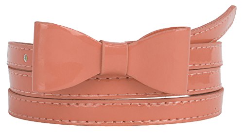 -. Title : Womens Stylish Faux Patent Leather Skinny Belt with Mini Bow Accent