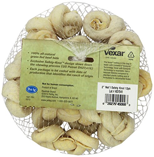 -. Title : Rawhide Brand 2-Inch Natural Safety-Knot Bones, 12 Per Pack, Mesh/Hdr