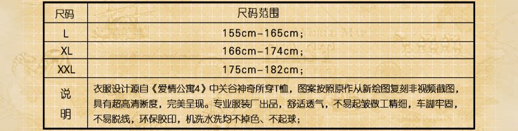 尺码:L号155-165cm;XL号166-174cm;XXL号175-182cm;