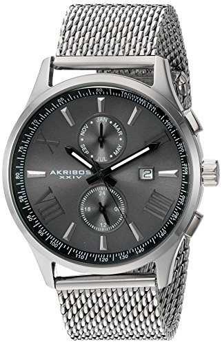 -. Title : Akribos XXIV Men's Swiss Quartz Multi-function Black Sunray Dial Silver-tone Mesh Stainless Steel Bracelet Watch AK905SSB