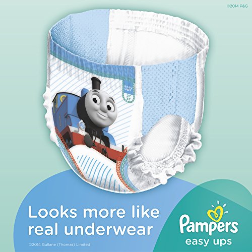 Get outstanding leak protection while potty training! You and your little boy will know when he’s ready for potty training. That’s why Pampers Easy Ups Training Pants are designed for when he’s ready for potty training during the day but still needs protection at night. Plus, they feature Pampers Leak Protection for fewer leaks than the other leading training pant.* And they feature fun Thomas the Tank Engine designs. *Based on size 4.Feature