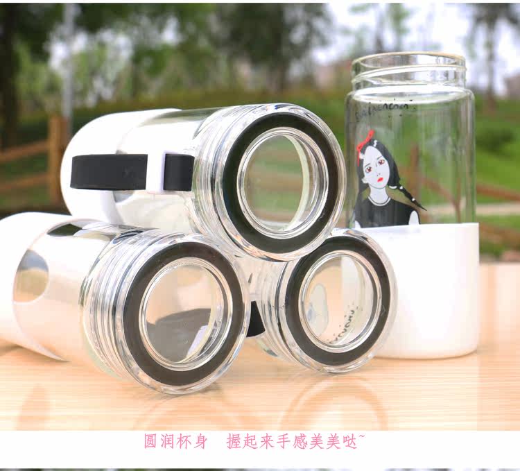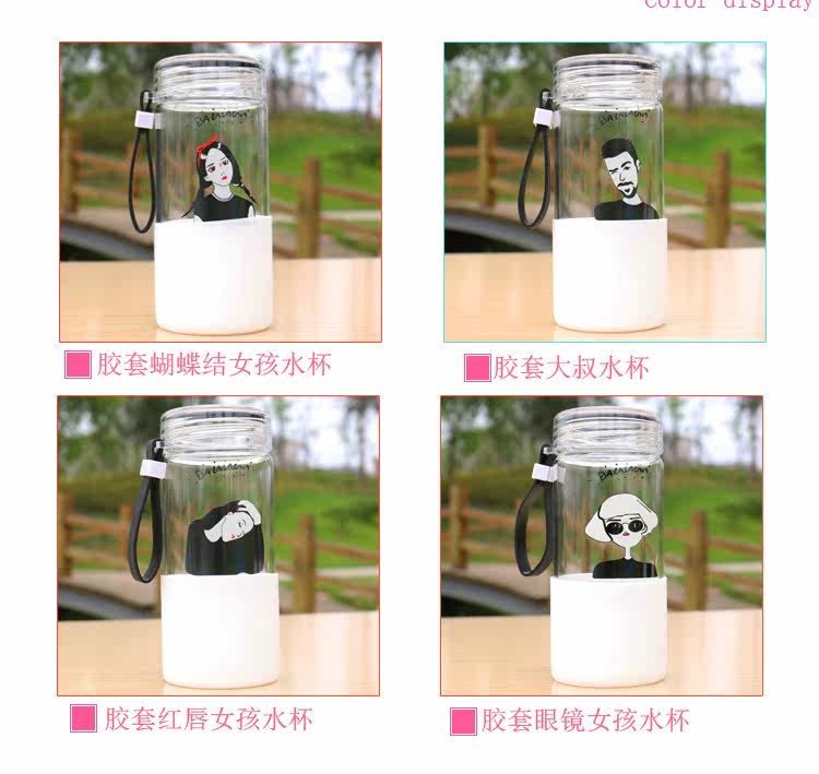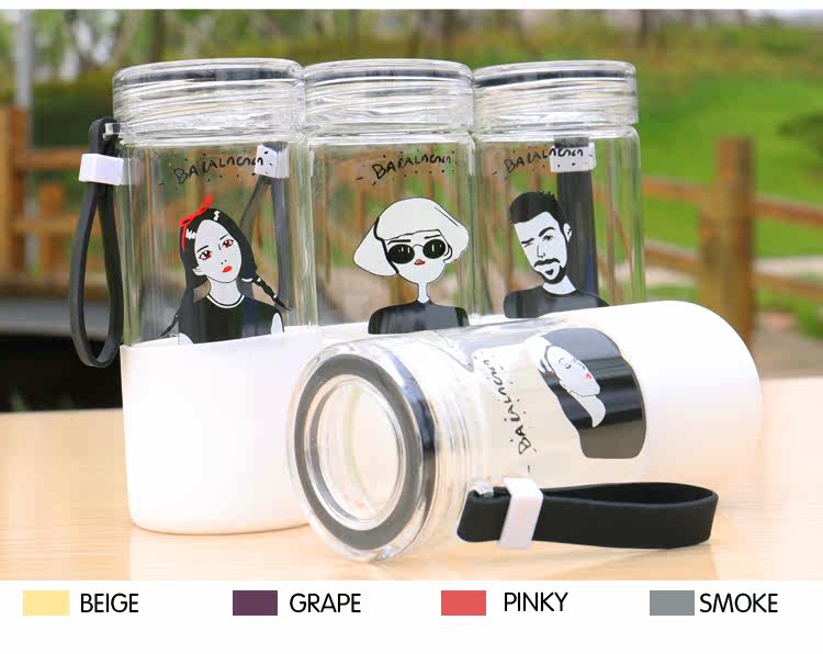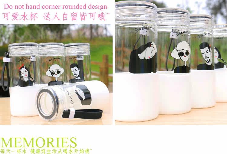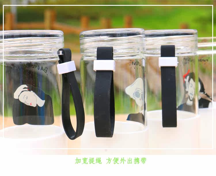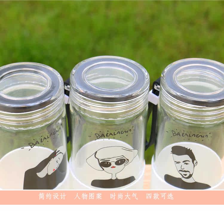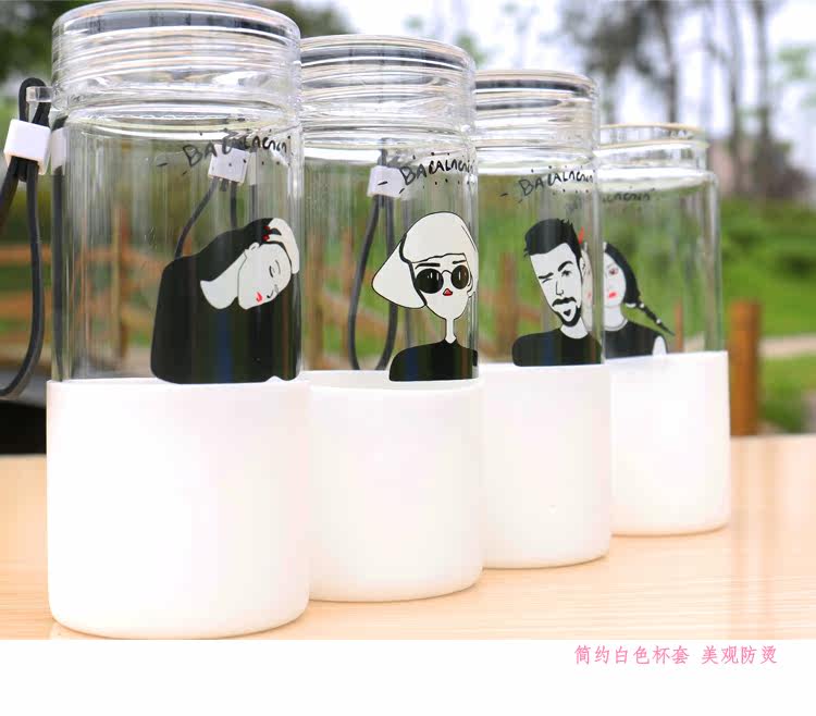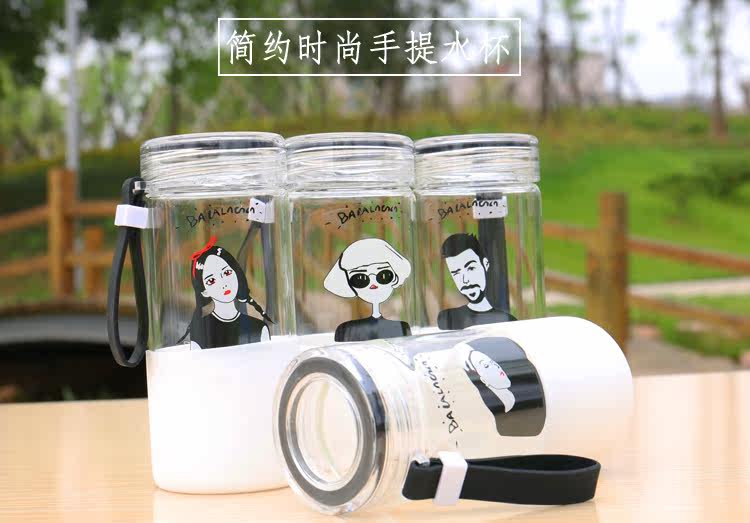 韩国简约时尚手提玻璃杯便携随身水杯带杯套学生户外运动随手杯子