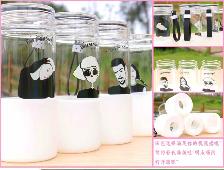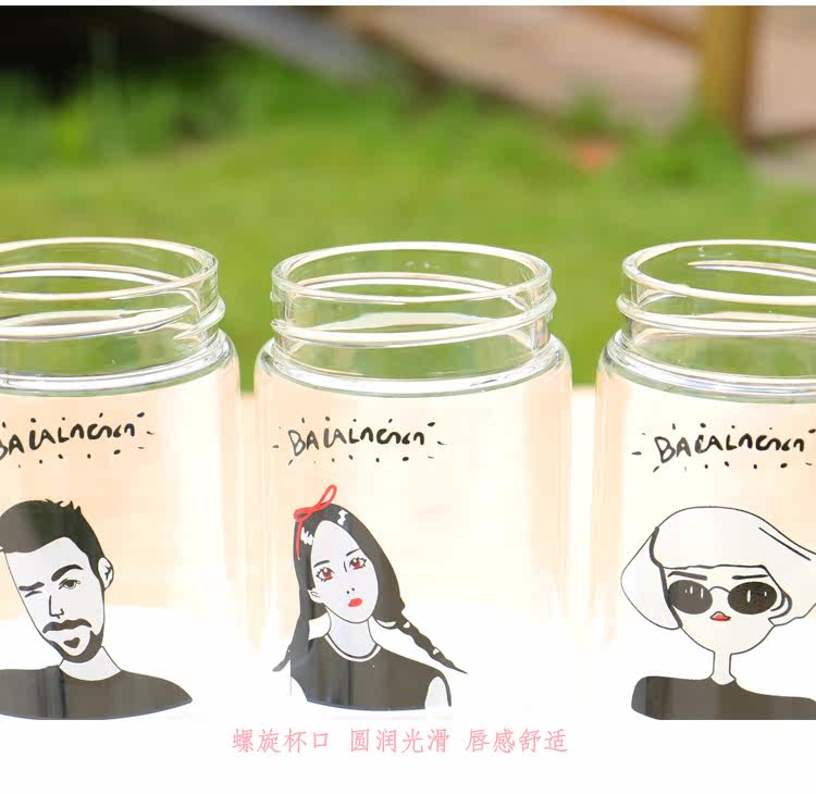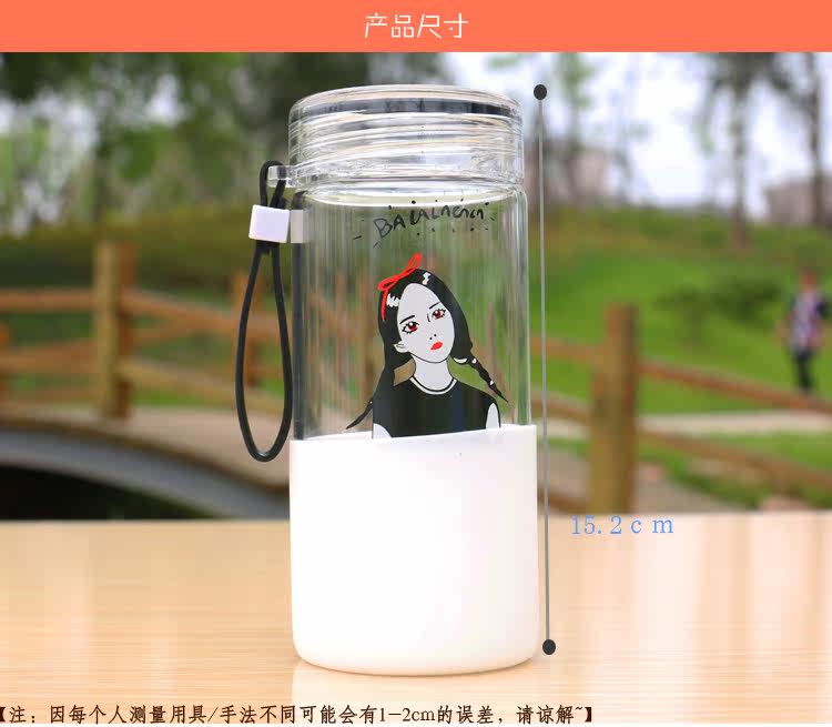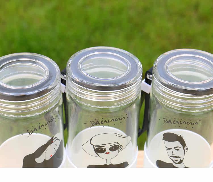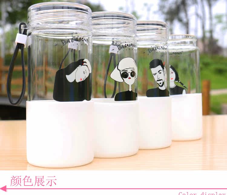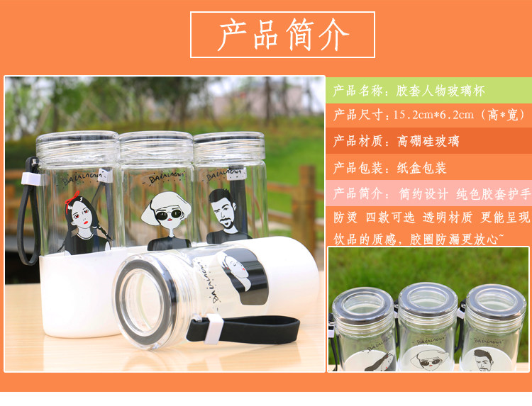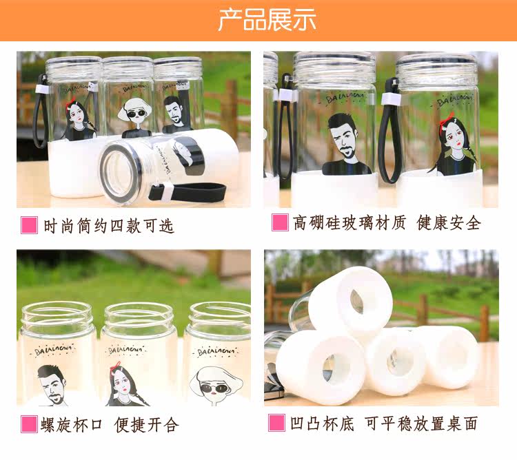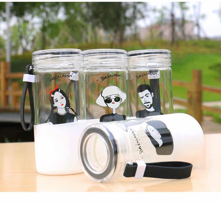 韩国简约时尚手提玻璃杯便携随身水杯带杯套学生户外运动随手杯子
