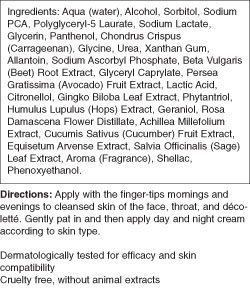 For Poorly Moisturized Skin. Slightly Astringent And Noticeably Refreshing On The Skin. Selected Herbal Extracts Intensively Moisturize The Skin And Stimulate Its Own Moisturizing And Moisture-Binding Abilities. Stabilizes The Natural Acid Mantle And Helps To Protect The Skin From Premature Ageing Caused By Environmental Factors. Key Benefits: Moisturizes With Hops, Sorbitol And Panthenol Binds Moisture With Provitamin B5 And Avocado Extract Strengthens Skin With Rose Water Increases Elasticity And Smooths Wrinkles Replenishes Oil Nourishes Skin With Avocado Oil And Vitamins A And E Protects Against Free Radical Damage And Counteracts Ageing With Ginkgo Tones And Stabilizes Skin With Sage.Feature