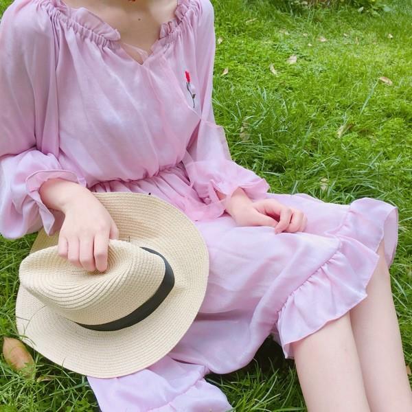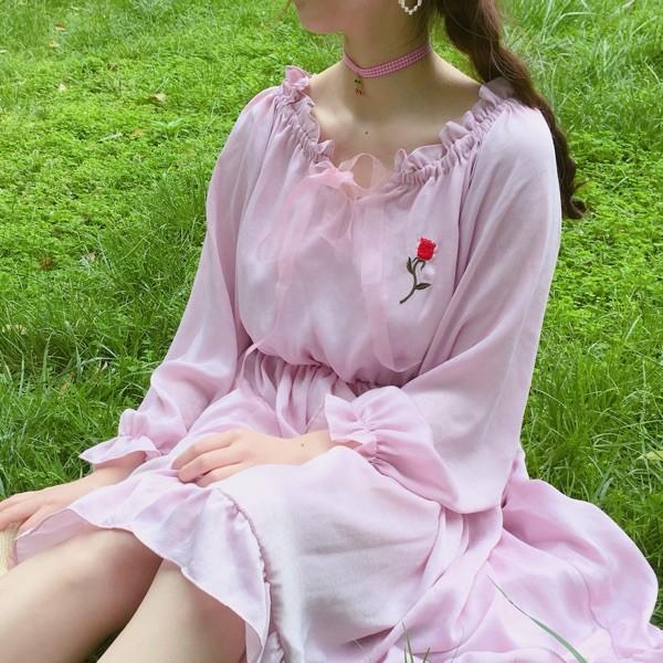 ベルスリーブとバラ刺繍がワンポイントで映えます☆