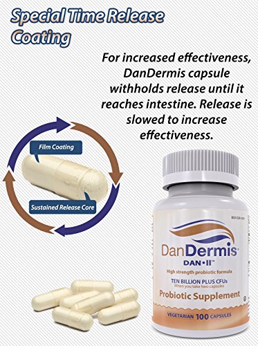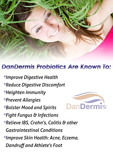 -. Feature : MOST EFFECTIVE: This high potency formula unique to Dandermis has 10+ billion CFUs per 2 veggie caps, & with 4 bacteria strains. This dietary supplement is up to three times as potent as other pre and probiotics on Amazon. / RELEASES IN THE INTESTINE: The pills have a slowly timed release so they only get released in the intestines, where they can be most effective and useful, and support intestinal flora, aid digestion, and even aid skin health! / ELIMINATE FOOT FUNGUS: By augmenting "good" infection-fighting bacteria, probiotics can help fight athlete's foot other fungal infections more effectively than creams and other oral medications. This also reduces hair dandruff. / SCIENCE-BASED REMEDY: Probiotics are good bacteria naturally in the body that help maintain keep the gut healthy. Pro & Prebiotics help battle IBS, Crohn's, Diarrhea, Constipation, Ulcerative Colitis & and other related maladies. / DIVERSE STRAINS & USES: Our supplement contains a unique formula of both lactobacillus and Bifidobacterium, the former being the most common probiotic used to treat diarrhea and the latter to alleviate IBS. Pills are vegan & Kosher.