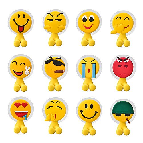 Toothbrush Holder with Wall Mounted, Antibacterial Emoji Toothbrush Holder Suction Cup for Mirror/Shower, 12 Sets Cute Decorative Bathroom Toiletries Accessories Organizers & Office Cable Holder