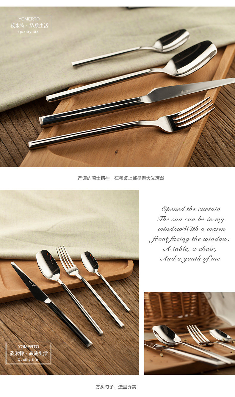 牛排刀叉勺子西餐餐具四件套装骑士不锈钢加厚主餐刀水果叉子全套