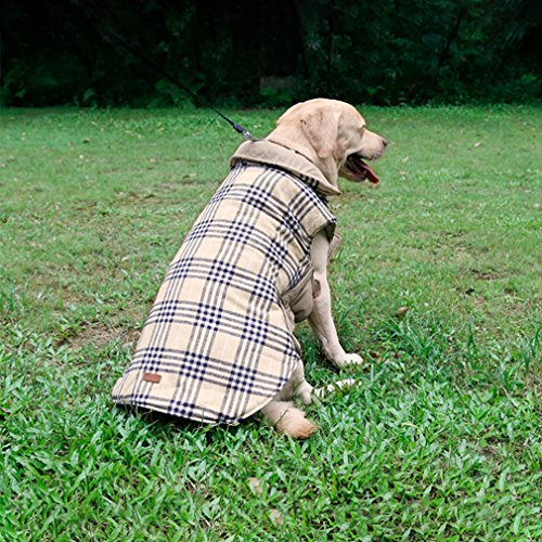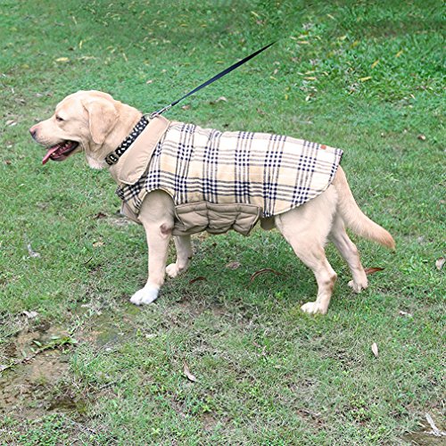 -. Feature : MATERIAL: Dog Jackets, the outer polyester is waterproof, the inner is full of cotton. So the dog winter jacket is made of comfortable soft material. With the 2 layers of fabric material, when dogs put the down jacket on, the jackets can keep dogs warm and protect their bodies from being cold during the cold winter. Moreover, your pet dog won't feel any discomfort. / DESIDN: Double reversible material design ensures that your pet dog can feel the warmth of winter completely. Plus easy zipper design, you can help your dog put on the down jacket easily. On the back of the down jacket there are 2 buttons, which is convenient for you to set the rope on the button to keep in touch with your pet dog. / FEATURES: Soft warm double material, easy zipper design, windproof and waterproof features with buttons on the back, make the dog down jackets more and more popular in pet lovers. They all want to let their pets wear comfortably and feel warmth and masters' good in cold winter. Then our dog winter jackets can meet you and your pet dogs' needs. / EASY-CLEAN: The dog down jackets is easy to clean. You must be aware what the most convenient way to wash this jacket is. Whether you're hand washing or machines wash, they all can achieve what you want. You can even brush the dog down jackets gently with a brush. / TIPS: As our dog down jackets have 5 sizes. So before you buy the dog winter jackets, you'd better measure your dog's size in case you buy the jackets of wrong size. And when you choose the size, we advise you to choose a larger size, so that it is beneficial for dogs to feel the comfort of their stomach.