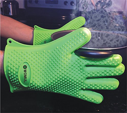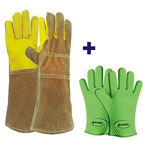 WOMUL Safety gloves set (1pair Animal Handling gloves + 1pair heat resistant bbq silicone gloves )