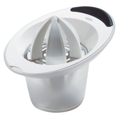 Studio : OXO Good Grips Publisher : OXO Good Grips Product Description Fresh squeezed citrus juice is delicious by the glass and perks up your favorite recipes. Now juicing is easy with the OXO Good Grips Citrus Juicer. Two different sized reamers are perfect for lemons, limes, oranges and small grapefruits, and our clever reamer design makes juicing easy and efficient. For recipes, use the measurement markings for the perfect amount of juice every time. And the soft, non-slip grip makes pouring comfortable. The Juicer comes apart for easy cleaning and is dishwasher safe. Dimensions: 7' x 5' x 6'. Weight: 10 oz. 0