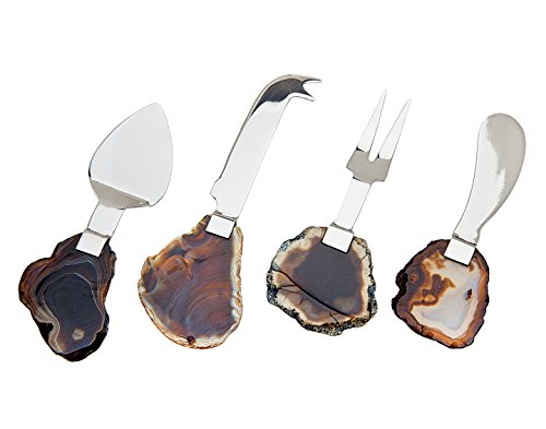 -. Title : Godinger Silver Art Cheese Set Agate Handles Set of 4