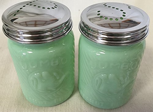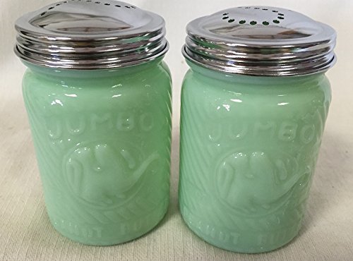 Jade Jadeite Glass Jumbo Peanut Elephant Salt & Pepper Shaker Set