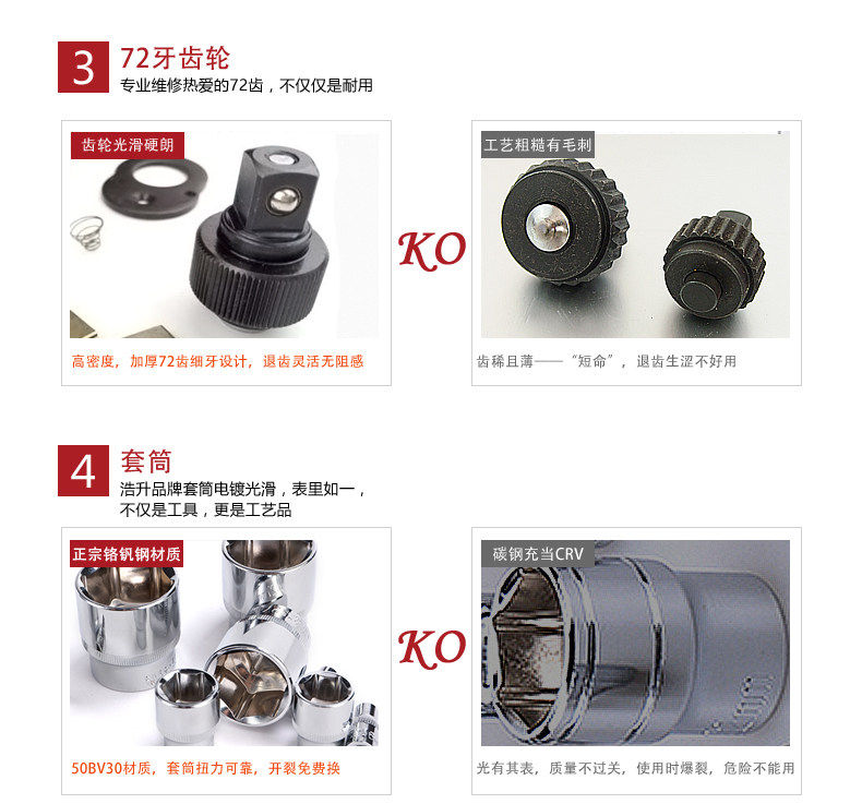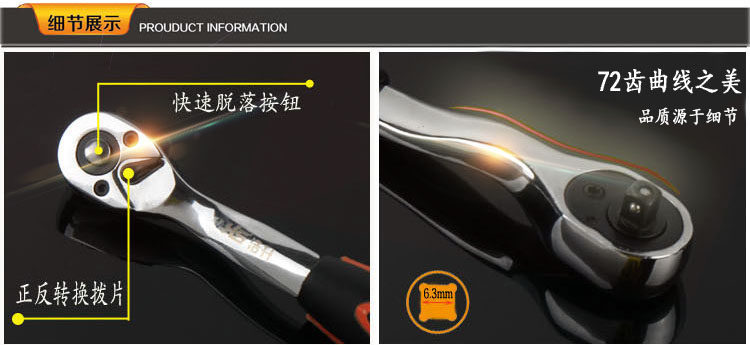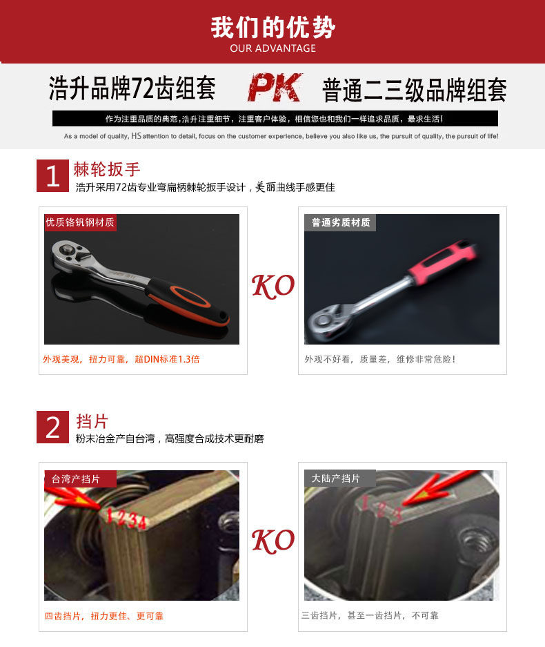 Some customers ask Why is it more expensive than other brands? Because we are 72 teeth bending handle industrial ratchet wrench sets, the cost of wrench than the 45 teeth 20%, the internal block for the origin of Taiwan, the torque can be ultra-standard 30%! Sleeve produced by the national standard drafting units, more than 10 years experience in the production of sleeve tools, and the United States well-known brands with the production line, safe and reliable quality, crack replacement!