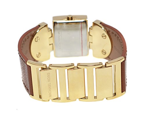 Title : Michael Kors MK2344 Rectangle Gold Brown Logo Leather Band Women's Watch