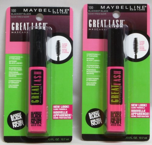 2x Maybelline Great Lash Mascara Blackest Black 100 041554670745