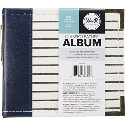 AMERICAN CRAFTS WE R NAVY WITH GOLD FOIL STRIPES DESIGNER ALBUM, 4 BY 4"