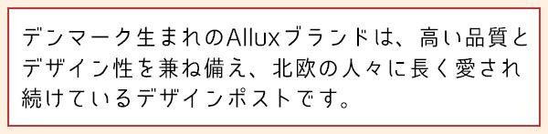 | 北欧の人々に長く愛され続けているAlluxブランドのデザインポストです。ぽてっとした円形デザイン。 |