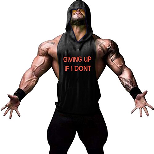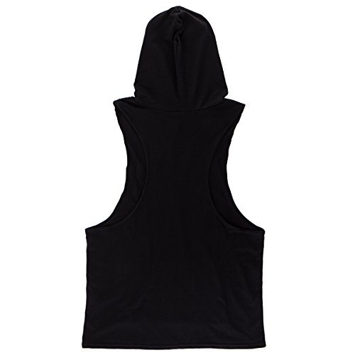 Gerlobal Mens Bodybuilding Stringer Hoodie Workout Fitness Gym Tank Top Black,X-Large