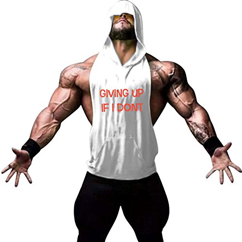 Gerlobal Mens Bodybuilding Stringer Hoodie Workout Fitness Gym Tank Top White,XX-Large