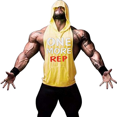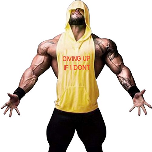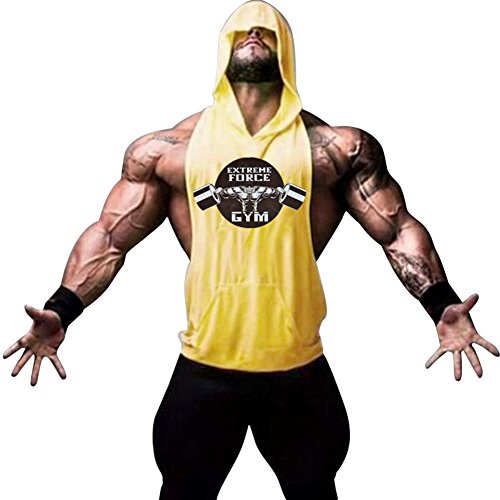 Gerlobal Mens Bodybuilding Stringer Hoodie Workout Fitness Gym Tank Top Yellow,Large