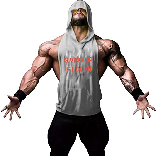 Gerlobal Mens Bodybuilding Stringer Hoodie Workout Fitness Gym Tank Top Grey,XX-Large