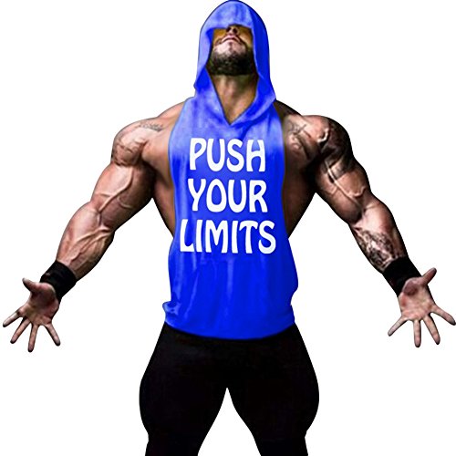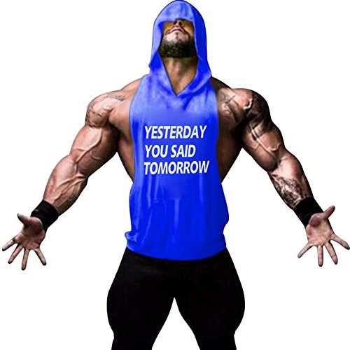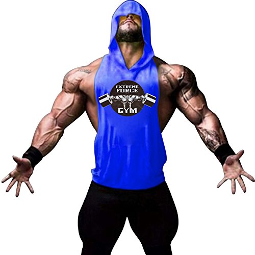 Gerlobal Mens Bodybuilding Stringer Hoodie Workout Fitness Gym Tank Top Blue,Large
