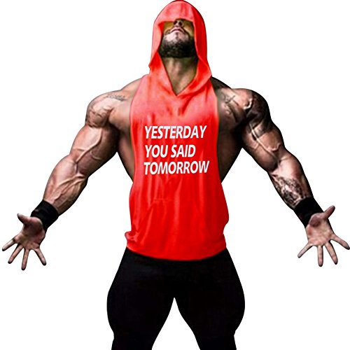 Gerlobal Mens Bodybuilding Stringer Hoodie Workout Fitness Gym Tank Top Red,XX-Large