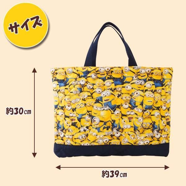 総柄プリントの綿素材を使用し、手作り感のあるように仕上げた商品です。A4サイズもラクラク入りますので、サブバッグにも最適です♪ 製造国:日本 素材・材質:表地・裏地:綿100%中綿:ポリエステル100% 商品サイズ:約H30×W39cm(マチ付き) ※サプライヤー直送品 ご注文後3~4営業日後の出荷となります【商品名】ミニオンズ レッスンバッグ FG-1277 1A