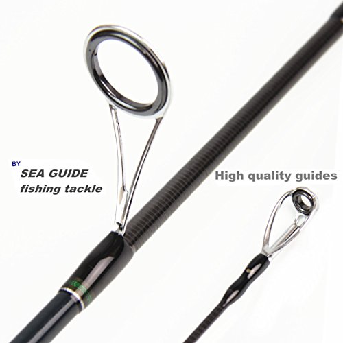 Lightweight and super-sensitive, very strong based on "SK" carbon fiber made in Korea, the rod tip is made of pure carbon and the butt section is been mixed with a little of fiberglass in order to make it stronger. The guides come from SEA GUIDE fishing tackle, silver stainless steel frame with SIC ring, super quality.