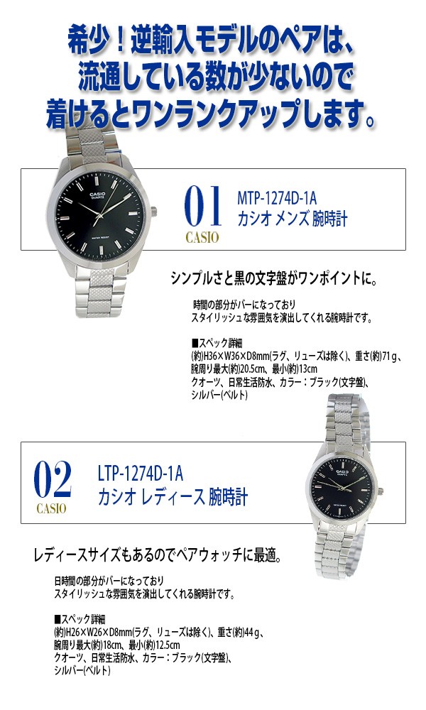 | 【ペアウォッチ】 カシオ CASIO チープカシオ ユニセックス 腕時計 MTP-1274D-1A LTP-1274D-1Aパーカー ペン付き |