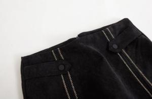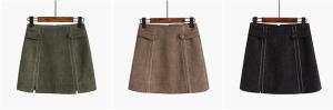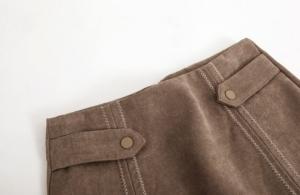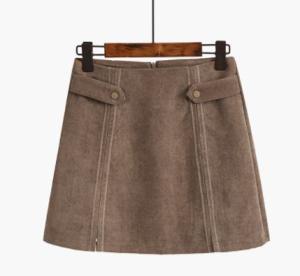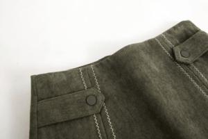 ウエストのサイドベルトと縦ラインのステッチが可愛いAラインミニ丈スカート☆