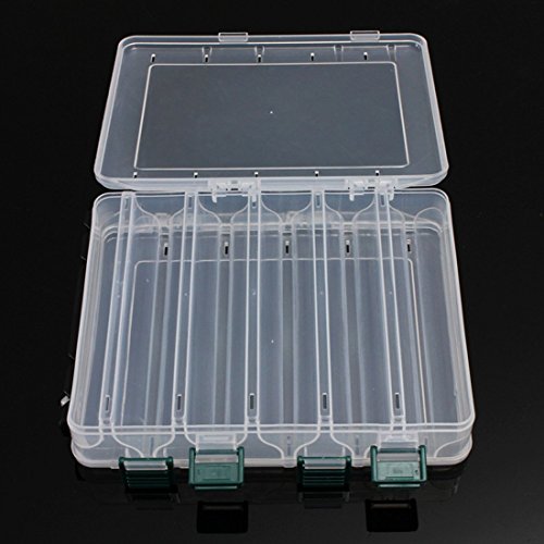 -. Title : 10 Compartments Plastic Fly Fishing Lure Tackle Box Double Sided High Strength Transparent Visible with Drain Hole
