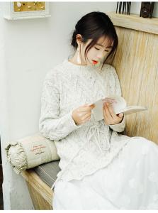 ゆる可愛いベージュベースのニットとふんわり広がるレーススカートは、大人気の組み合わせ♪
