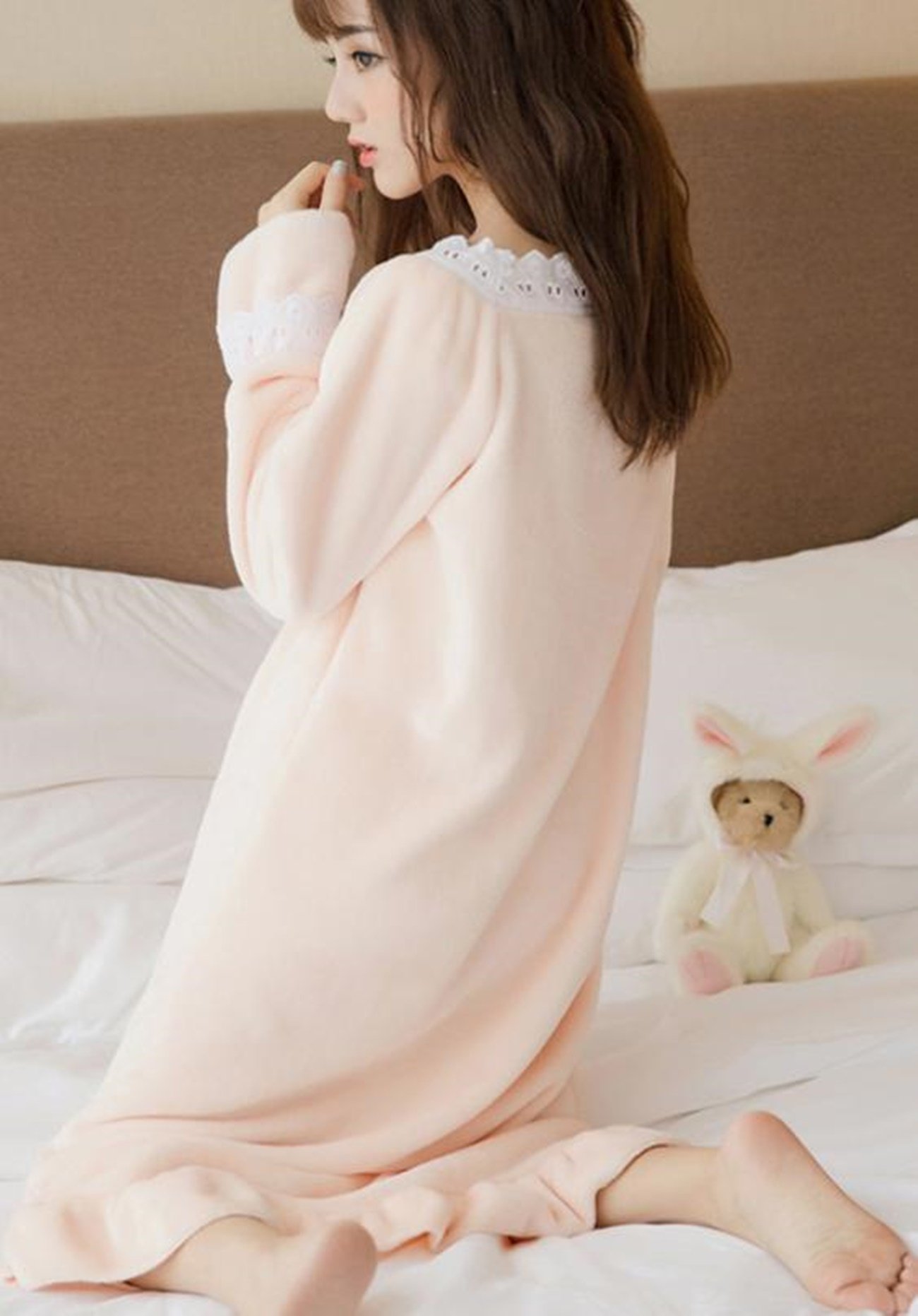 Oche fluffy room wearing Pajamas long sleeve room wear One piece women's
