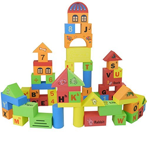-. Feature : Set of 70 peices buildig blocks with gift box package ,which easily carry .Great for color and shape recognition .Suitable for baby ,toddler and kids early learning education , include Mathematics, English words, Spelling, Animal, Vegetable,Castle / Safe, soft foam blocks, non-toxic environmental protection. / Blocks with many different cartoon pattern and English words , creatively inspire kids' imagination and manipulative ability. / Manipulative like blocks are one of the keys to successful cognitive development and constructive learning. / It's suitable for kids play indoor with family , so funny and popular in children of preschool.