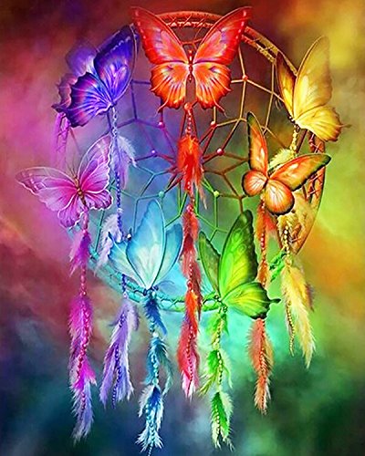 Everydlife DIY 5D Full Diamond Painting by Number Kits Set with Square Drill Diamond Indian Dream Butterfly Embroidery Rhinestone Cross Stitch Arts Craft Supply for Home Wall Décor 12x16 inches
