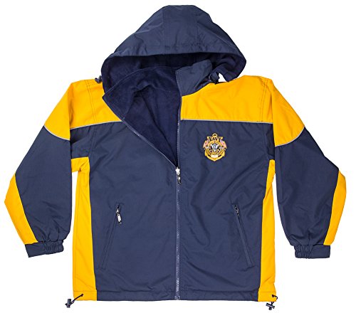 Product DescriptionUs Navy Hooded Light Weight Rain Resisdent Wind Breaker Jacket Reflectabe Safty Pipping And Removable Hood Mesh Nylon Liner Imbroyeder Logo Draw Sting Waist Black-Gold Jacket0