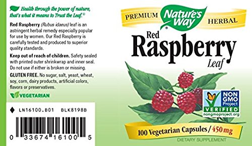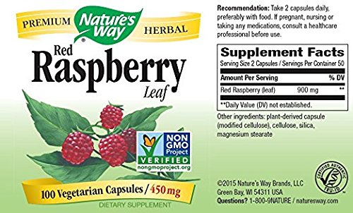Studio : SCHWABE NORTH AMERICA, INC. Publisher : SCHWABE NORTH AMERICA, INC. Binding : Health and Beauty Product Description Try Nature's Way Red Raspberry Leaves, a traditional herbal supplement. Red Raspberry leaf has been used and celebrated especially by women. Red raspberry is a member of the rose family. Red raspberry leaves can also be used on the skin as an astringent. It's good for people suffering from acne and can improve skin firmness. Its astringent leaves are widely used as a traditional herbal tonic. Red Raspberry have been double packaged and printed with Nature's Way logo. Leaves of the Red Raspberry plant, well known for it's delicious fruit, carefully screened for purity, potency and quality. Traditionally they were added to water and gargled to treat irritations of the mucous membrane or swallowed to soothe the stomach. The most popular use of red raspberry leaves would be for pregnancy. It has been known to help with nausea associated with pregnancy and to ease the pains of delivery. For woman that are not pregnant and have menstrual issues red raspberry leaves are known to regulate the menstrual cycle and relive the symptoms of PMS. Red raspberry leaves have also been found to lower blood sugars in people with diabetes. Beware though if taken in large does the red raspberry leaves could cause the blood sugar to drop to low. There have been few side effects reported when taking red raspberry leaves. This package includes (2) Nature's Way 100 Capsules 450 mg Red Raspberry Leaf. 0
