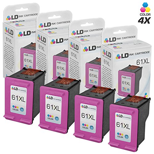 LD © Remanufactured Replacements for Hewlett Packard CC564WN 61XL / 61 Set of 4 High Yield Tri-Color Ink Cartridges for use in HP Deskjet, ENVY e-all-in-one, & OfficeJet Series